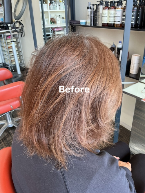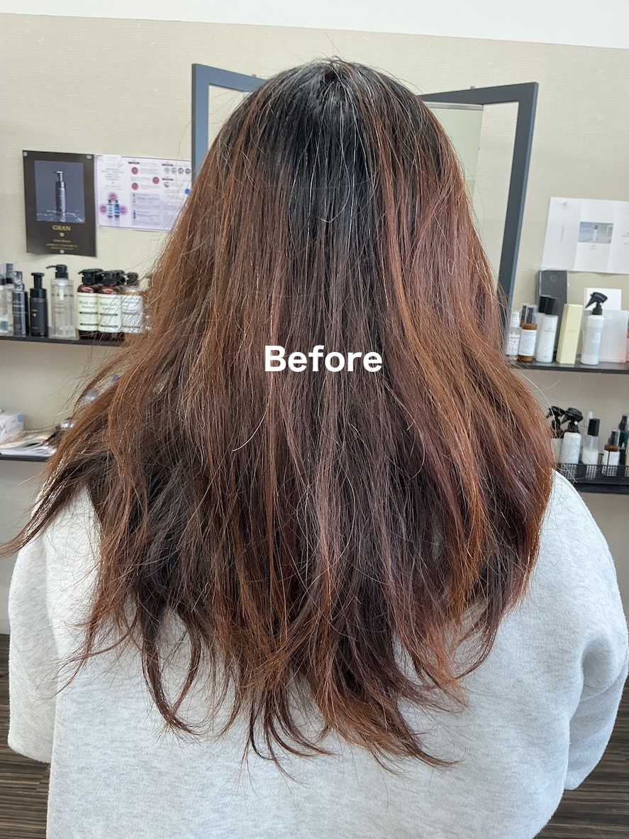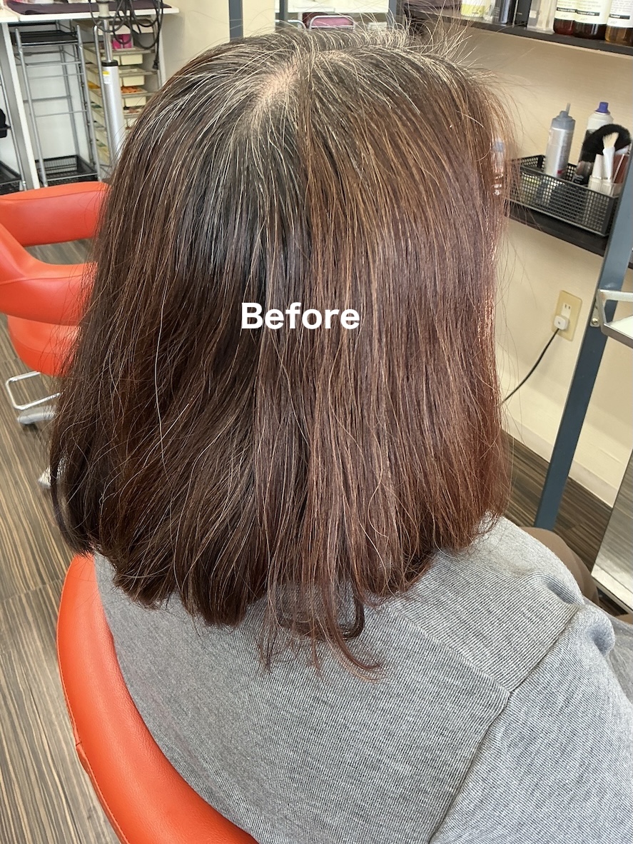 A. 髪の状態に合わせた施術を行うため、従来のカラーに比べ負担を抑えやすいのが特徴です。ただし、履歴によっては限界もあるため、事前にしっかりご説明します。